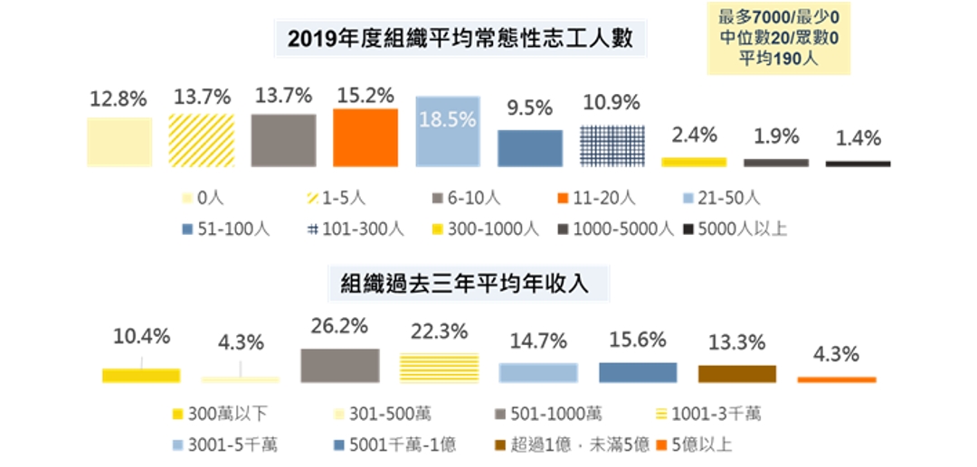 本研究中的非營利組織,在台灣非營利組織責信標準自我檢核中,展現平均高達8成以上的完全符合率,組織資訊定期公開平均也超過8成,而在財團法人法施行後,也大多能適應未受到影響,可見其整體成熟度。雖然本次研究中的填答組織超過8成為自律聯盟盟友,而要加入自律聯盟需經過一定門檻,然而自律聯盟盟友2019年總收入達255億,推估約占當年度總捐款額的三分之一至二分之一,故具一定代表性,足以描繪出台灣部份非營利組織現況。由上可知,台灣的非營利組織在歷經多年公民運動的蓬勃發展後,已具備基礎的責信能力與能量。